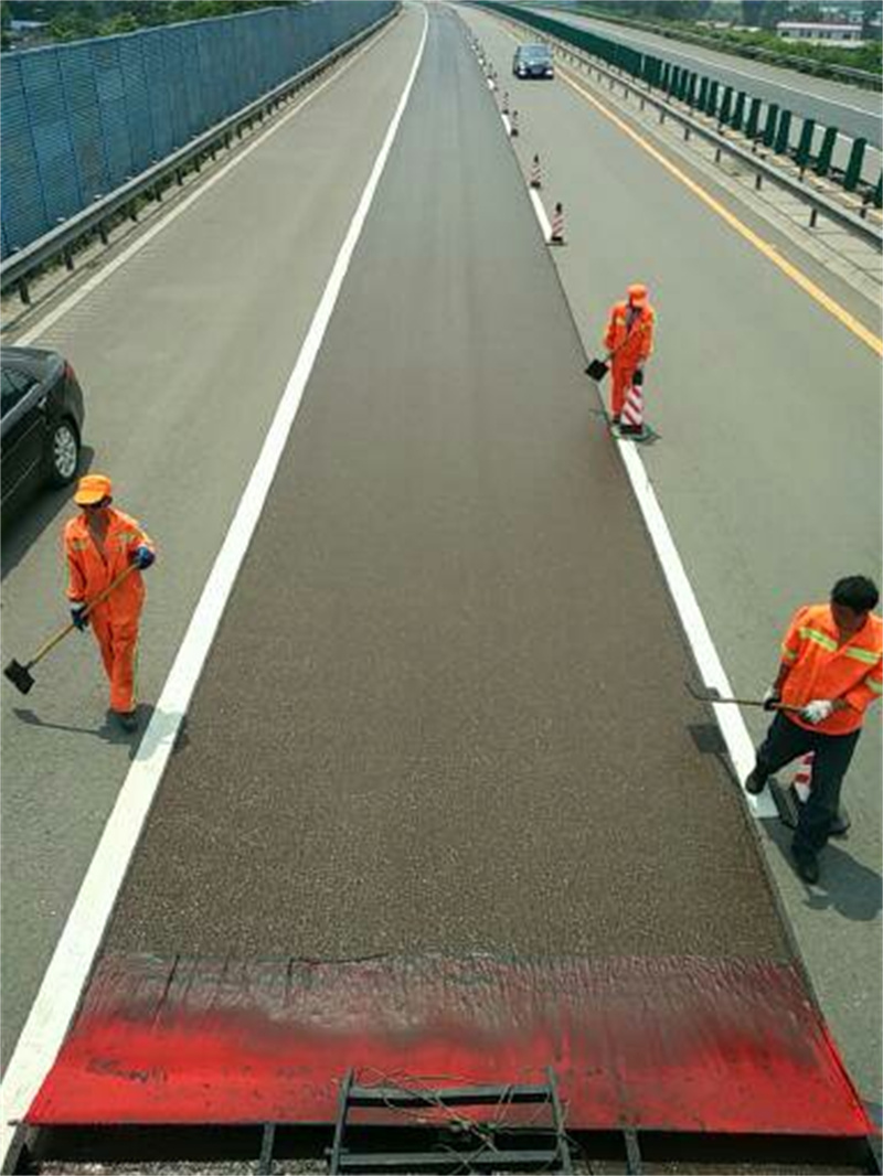 應用范圍:     砂封層主要應用于高速公路,一、二級公路瀝青路面的預防性養護??梢赃M行美化路緣、路肩施工。經過砂封層施工后可以改變新舊路面的外觀及顏色。施工說明:砂封層是一種層鋪的施工工藝。采用同步碎石封層設備將聚合物改性粘結材料和骨料金剛砂同時撒布施工的一種施工工藝。粘結材料應選擇高濃高粘且具有一定滲透型和還原性。骨料需選擇耐磨的金剛砂。技術特點:(1)常溫施工,無需加熱,節能環保。(2)用來解決瀝青路表面瀝青老化出現的貧油狀況。(3)解決原路面出現的麻面、松散掉粒、輕微裂縫等現象。(4)新路面可以起到防水的作用。(5)增加路面摩擦系數和耐磨性能。施工工藝:封閉交通→清理路面→病害處理→砂封層施工→養生→開放交通